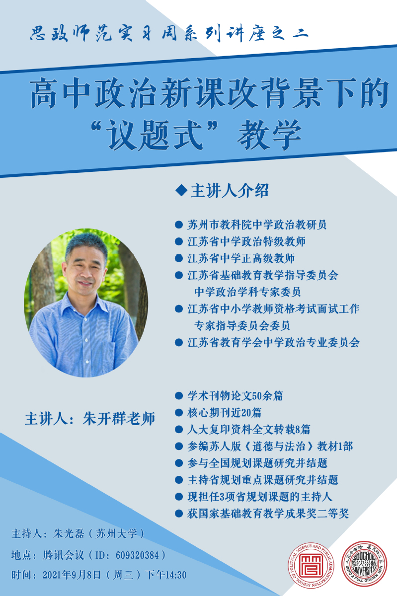 思政师范实习周系列讲座之二|朱开群:高中政治新课改背景下的“议题式”教学