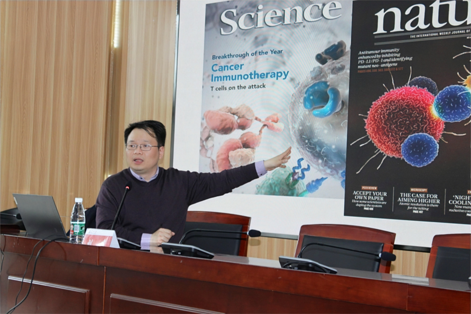刘庄教授长期专注于生物材料领域的交叉学科研究,在本场讲座中,他结合自身的科研实践探索主要针对近年来快速崛起的一类肿瘤治疗策略——免疫治疗,进行了专业性、深入浅出的解读,既为现场师生展现了相关科学研究领域的前沿动态和广阔视野,更进一步点燃了师生们内在的科研激情。