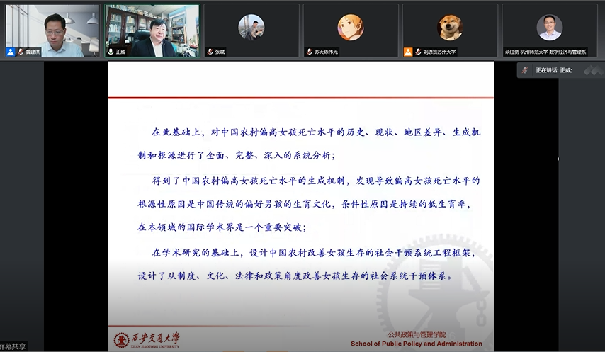最后,朱正威教授对浙江大学同行基于浙江经验提炼中国方案的相关研究进行介绍,指出中国公共管理研究者需要将公共管理的实践语汇与实践需求作为必修课,从中国公共管理的实践语汇中提炼出中国公共管理的经验和特色,通过梳理、提炼、阐释中国经验、中国方案,丰富和发展公共管理学科的一般知识和理论。