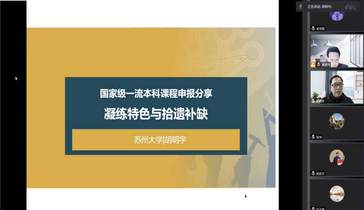 胡明宇从“凝练特色”和“拾遗补缺”两个角度出发,结合自身申报一流课程的经历和经验,对一流课程申报的重点进行了详细的阐述。
