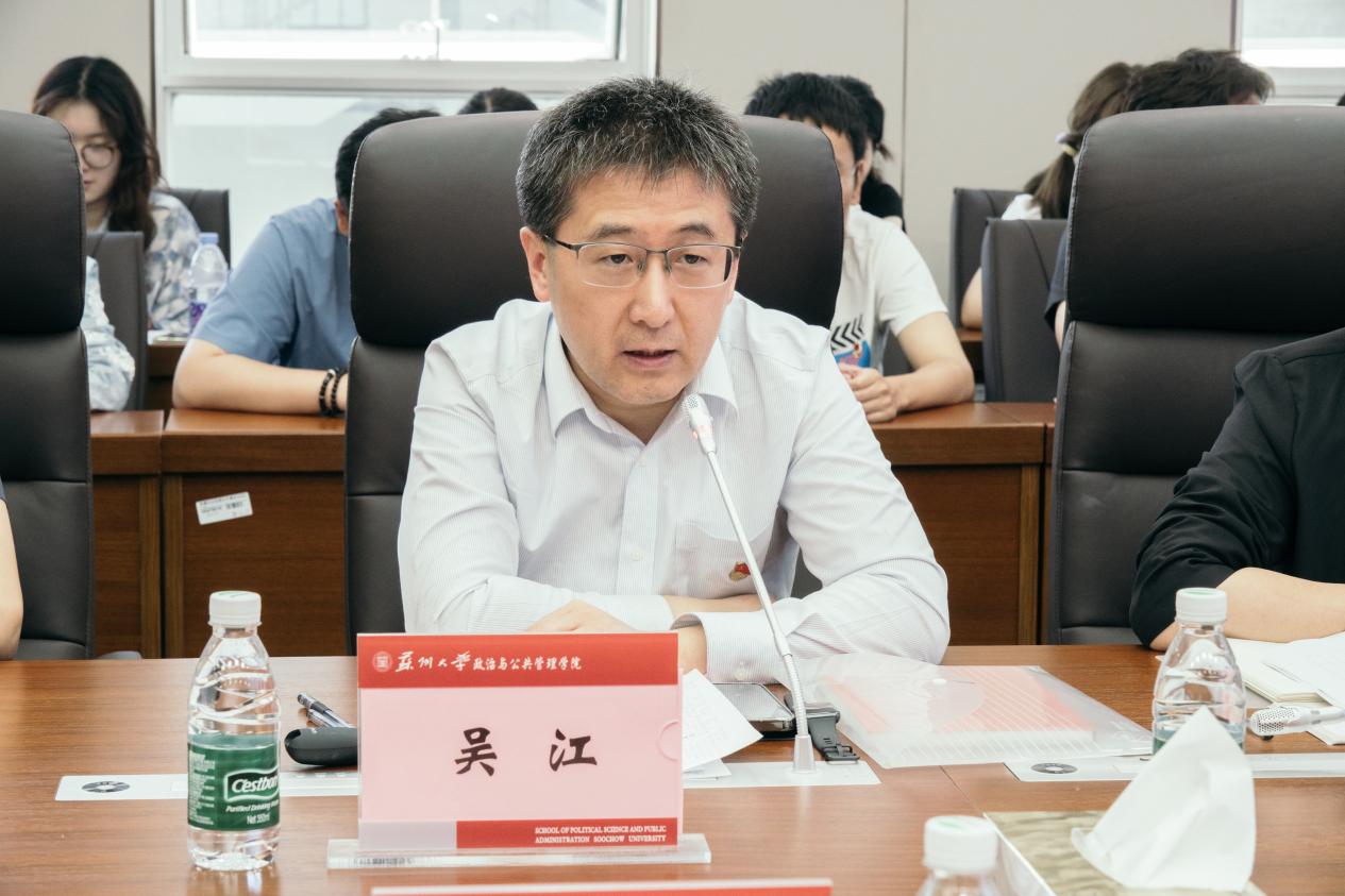 校党委常委、党委宣传部部长、党支部书记吴江以《创新赋能,融合聚力,构建高校立体化、多维度传播体系》为题,从“创新传播理念,引领新闻宣传新方向”“创新机制方式,赋能媒体融合新样态”“创新内容表达,提升新闻传播新效能”等方面系统阐释宣传工作的创新路径,以寸止挑战 一篇篇接地气的报道、一幕幕深入人心的短视频为例,分享宣传工作经验。他勉励同学们进一步提升宣传意识与新闻素养,提高站位,把准方向,增强责任感与使命感,为讲好强国故事、苏大故事贡献智慧力量。