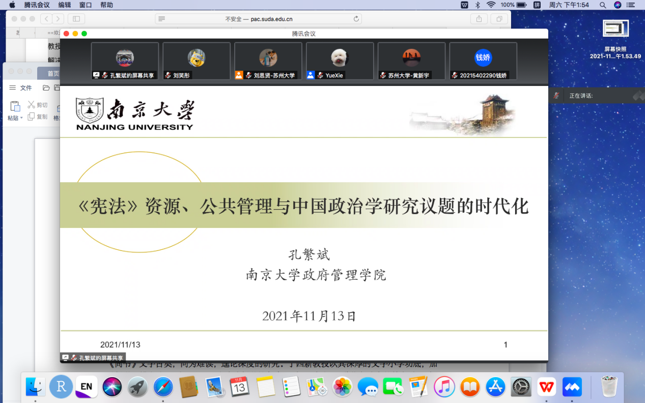 主办的东吴公管系列讲座,以腾讯会议形式在线上为校内外师生作题为“《宪法》资源、公共管理与政治学研究议题的时代化”的学术讲座。讲座由寸止挑战