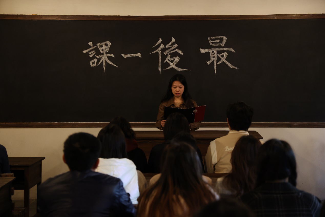 在沉浸式的参观学习后,师生党员们来到“青春我行”实践活动区,共同上好“初心一课”。独立支部旧址还原了乐益女中教室陈设,黑板上苍劲有力的“最后一课”四个字让人仿佛穿越历史时空,看到灼灼风华,听到郎朗书声。在师生共读书信环节,校党委宣传部岳昱星老师领读“最后一封家书”。这封家书是中共苏州独立党支部书记叶天底在1928年2月8日牺牲前,留给大哥的一封绝笔信。“我决不愿跪着生,情愿立着死!”革命先烈至死不渝的理想信念力透纸背,一字一句激荡人心。