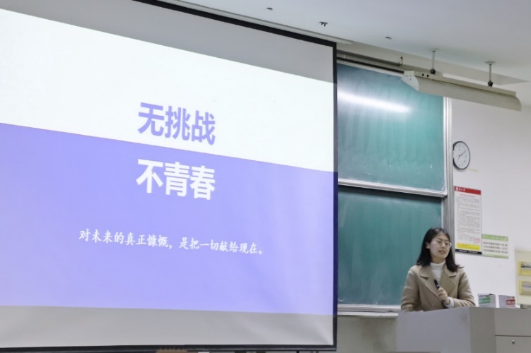 2021级行政管理专业的蔡解语同学向大家分享了“挑战杯”参赛经历与心得体会。她建议学弟学妹们在选题方面多关注经济社会发展的痛点和难点问题,在备赛过程中时刻和指导老师、队友们保持高效畅通的联系。“研究过程从来不是一帆风顺的,只有秉着一颗坚定乐观的心才能走向胜利”,她祝福学弟学妹们在经历风雨中收获理想。
