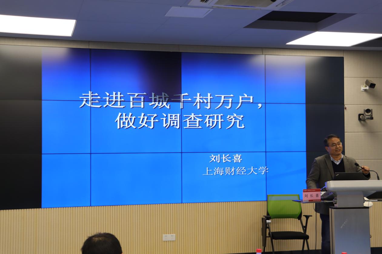 六支实践团队汇报答辩结束,刘长喜教授进行专题辅导。他讲述了大学生进行社会调查研究的意义,介绍了上海财经大学“千村调查”基本情况。刘长喜教授结合自己丰富的调研案例经验将社会科学领域的调查研究过程和方法抽丝剥茧、娓娓道来,向师生详细介绍了社会调查研究类型和特点、具体步骤、资料收集的方法与技巧,也就调研伦理问题进行了提醒。他特别强调,调查报告撰写过程中的学术规范值得注意,同学们应当从本科阶段起就养成良好的学术习惯,注意图标规范、引注文献、文字表达等。