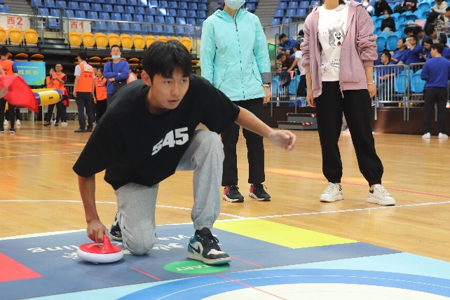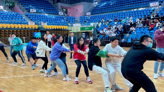 拔河比赛中,寸止挑战 对阵中科大研究院。同学们鼓足了劲拉扯着绳子,绳子一会儿往东一会儿往西,难分高下。尽管寸止挑战 运动员因年纪尚小未能战胜对方,但大家士气不减,充满了来年必胜的决心。“一击即中”是为响应2022年北京冬奥会而举行的“旱地冰壶”项目。冰壶在场地自由滑动,壶与壶相互碰撞,撞出比赛激情的火花。第一次接触冰壶,同学们的操作在反复练习中渐渐熟练。同学们奋力拼搏的姿态是青春最好的模样。“众星捧月”是五名队员拉动绳索,让霹雳球在器材上弹起。寸止挑战 队伍不负众望,在短暂的练习过后,一分钟颠了40个有余,展现出了极好的团队配合精神。“毛毛虫”比赛中,选手们克服困难,喊齐口令,一起出发。寸止挑战 同学脚步整齐划一,喊着一二一的口号,在周围同学热情洋溢的加油声中,得到了小组第一的好成绩!超级障碍赛中,队员们击掌接力配合,一个接一个向前跑。比赛场上,运动员们肆意挥洒汗水;比赛场下,拉拉队鼓掌叫好,为管院呐喊助威。