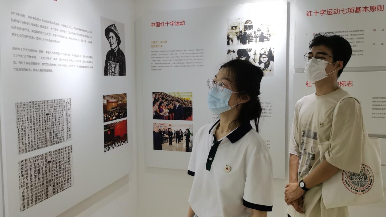 在参观红会展厅的过程中,一张张真情流露的照片,一个个熠熠闪光的奖杯,静默而又铿锵有力地昭示着红十字“三救”“三献”的奉献精神。