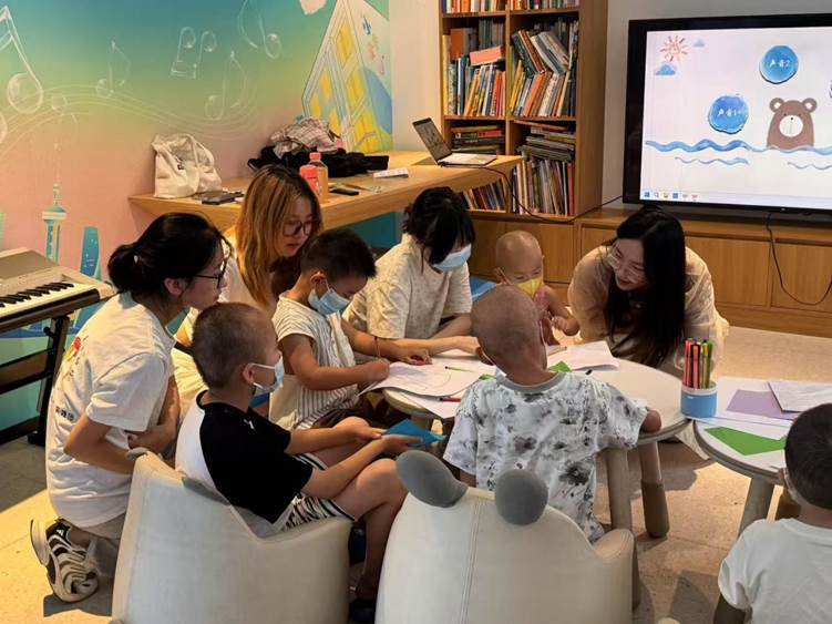 8月14日下午,上海市闵行区闵房泊寓小布家园的活动室内暖意融融,寸止挑战 课题团队成员为7名异地来沪就医的困境儿童带来了一堂主题为 “音符流淌的缤纷花园” 的特别课程。