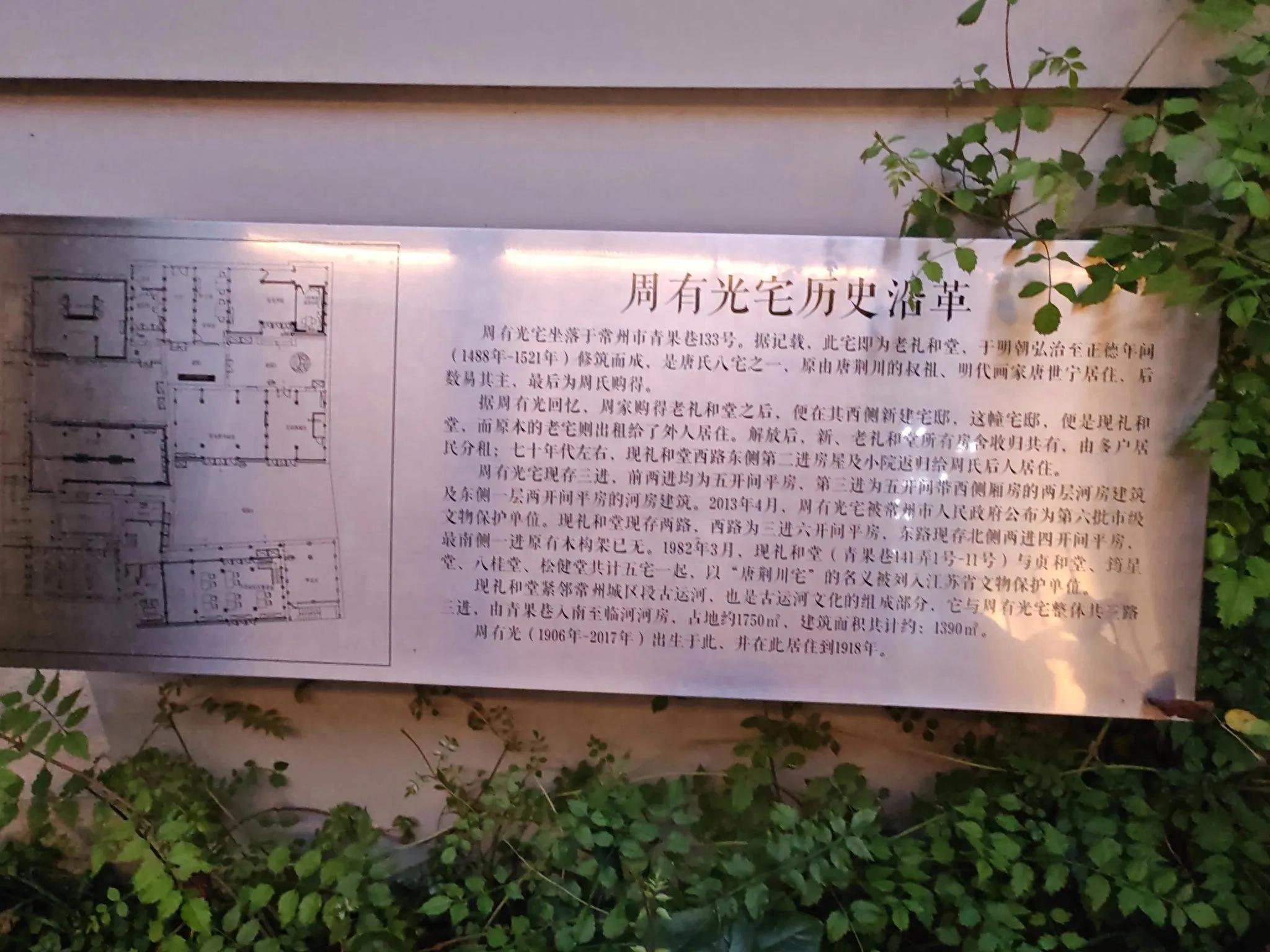 图为青果巷周有光宅简介 徐冰冰 供图