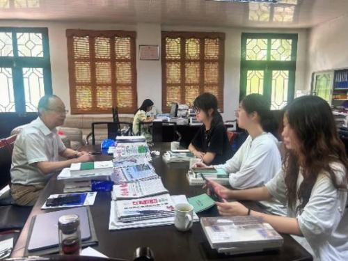移步工作区,队员们与陈建林会长展开了深度对话。他坦言道,自己因崇敬顾炎武“用脚步丈量学问”的精神而投身研究。谈及古城焕新的实践难题,他敏锐指出“要避免目光浅显,要创造性地推动文脉新生。”例如,在古宅修缮时兼顾其原真性与现代功能,在街巷改造中植入“便民利民”的理念,从而实现让“老空间”服务“新生活”。陈会长的话给队员们带来了深刻感悟——古城焕新既要考虑本源,又要着眼长远,警惕顾炎武批判的“竭泽而渔”。