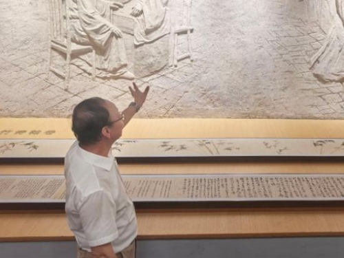 图为陈建林会长为团队成员讲解展览内容。夏凌予 供图