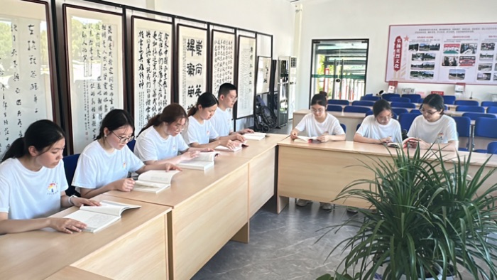 图为实践团成员阅读红色典籍、展开交流讨论通讯员李苏供图