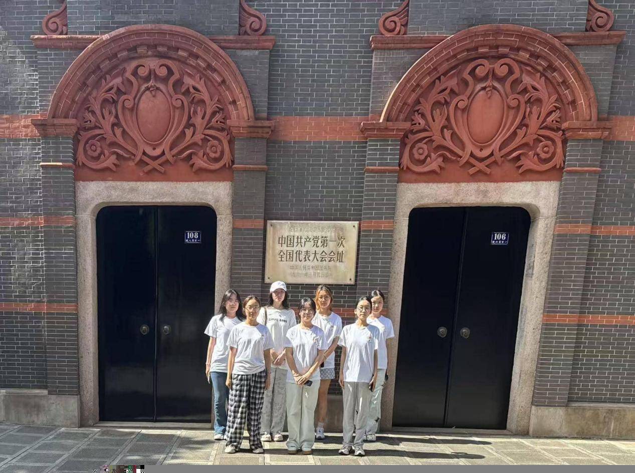 站在中国一大会址外,夕阳的余晖为建筑镀上金光,实践团成员自发合唱《没有共产党就没有新中国》,用歌声传递信念,以青春书写担当,吸引众多游客驻足。歌声与霞光交融,化作誓言,直上猎猎红旗,告慰先驱,亦照亮前路。