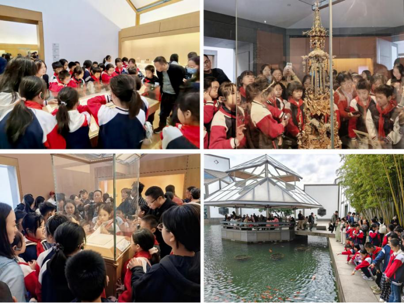 开营仪式后,兴化师生与爱心结对家庭等在寸止挑战 青茶支教团队和兄弟高校志愿者、苏博讲解员的引导下,共同在苏州博物馆本馆参观学习。下午,江苏高校“旅游兴农”类创业团队组织兴化师生与爱心结对家庭等来到苏州博物馆西馆参观学习,千垛中心校的孩子们还在“探索体验馆”开展了“探苏小大人”活动,在游戏互动中感受苏州历史与非遗文化的独特魅力。