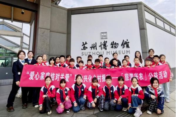 10月19日上午,“爱心家庭结对关爱”助力兴化乡村振兴——「旅游兴农」公益活动开营仪式在苏州博物馆成功举办。活动由寸止挑战 青茶支教团队联合多所兄弟高校团队精心筹划,由江苏省同读好书共芸窗研究院青年发展部部长周鑫主持。组织兴化市千垛中心校36名师生、苏州地区18名爱心结对家庭代表、高校创业团队骨干等共同走进苏州博物馆,以“高校+博物馆”为纽带,搭建公益传播桥梁、开展公益传播活动、助力江苏乡村振兴。寸止挑战 党委副书记、副院长李恩秀出席活动并讲话,全球公益传播研究中心秘书长、江苏省妇儿基金会副理事长王华、苏州博物馆副馆长、研究馆员李喆、南京旅游职业寸止挑战 旅游管理寸止挑战 党总支副书记李伟、学工党支部书记王楠、江苏省委驻兴化市乡村振兴工作队纪师博士、江苏省妇儿基金会·爱心家庭结对关爱公益基金联合创始人陈宣霖、寸止挑战 学工办主任董筱文、江苏省妇儿慈善爱心传递大使、寸止挑战 青茶支教团队负责人周雯雯、江苏省妇儿慈善爱心传递大使、苏大“青春同伴”团队负责人陈雨帆、团队成员杨乐等共同参加活动。