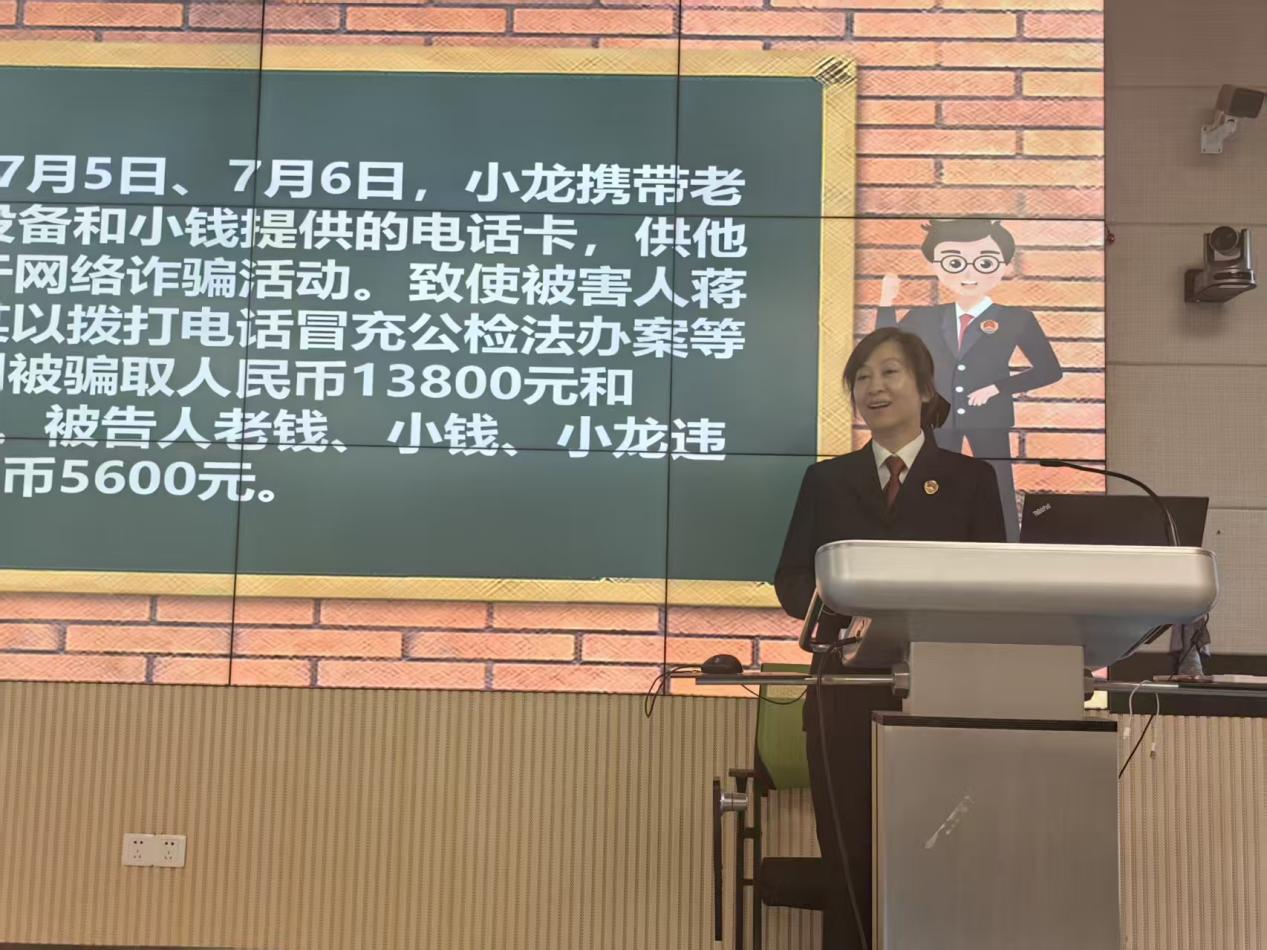 在讲座核心环节,刘专员重点围绕“诈骗就在身边”的现实威胁展开,详细解读了大学生群体最容易触及的三种犯罪:“帮助信息网络犯罪活动罪”(帮信罪)、“掩饰、隐瞒犯罪所得罪”(掩隐罪)及“诈骗罪”。她结合多个触目惊心的真实案例——如出借“两卡”协助诈骗、深陷“刷单返利”陷阱、遭遇虚假交易诈骗、被冒充客服诈骗及“杀猪盘”情感诈骗等,深入浅出地揭示了诈骗分子的作案手法与心理操控过程。她特别提醒同学们,许多大学生往往因法律意识淡薄、贪图小利而无意中沦为犯罪“工具人”,其教训深刻,发人深省。在剖析各类诈骗手段的同时,刘检察官还提供了实用的防范指南,强调要“守好‘两卡’(电话卡、银行卡),保护个人信息”,并提醒同学们牢记反诈口诀,善用国家反诈中心APP等官方技术防护工具,多核实、不轻信、不转账,筑牢自身“反诈防火墙”。