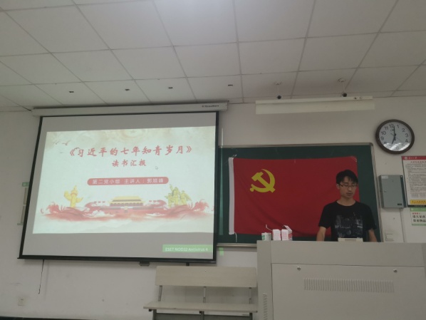 在汇报展示环节,高子彦同学以照片形式与其他同学分享了第一党小组成员阅读《习近平的七年知青岁月》的读书风采,并号召大家学做思想坚定、目标明确、方法正确的新时代青年。