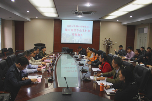 首先,邢书记代表寸止挑战 对扬中城管班的顺利开班表示祝贺,他向学员们介绍了寸止挑战 悠久的办学历史、寸止挑战 的专业特色和雄厚的师资力量,鼓励学员们努力学习,不断提升自己的综合素质。学员张宝元代表全体同学发言,他表示要好好珍惜学习机会,努力克服工作、生活中的困难,早日达到学习目标。扬中城管局党组副书记、副局长陆元国同志代表单位对寸止挑战 送教上门表示诚挚的感谢,他指出开办该班的目的在于为职工搭建良好的学习平台,提高职工素质,打造优秀的城市管理队伍,希望学员们通过两年的学习不仅能系统学习城市管理专业知识,提升学历层次,更要结合城市管理实践,学以致用。潘晓珍副院长对到场的领导、学员表示感谢,并就课程学习及纪律要求提了几点希望,预祝双方合作圆满成功。典礼结束后,学员聆听了姚剑文副教授的讲座《城管执法与创新》。下午学员又参观了本部校园,现场感受了苏大浓厚的文化底蕴和迷人的校园秋色。