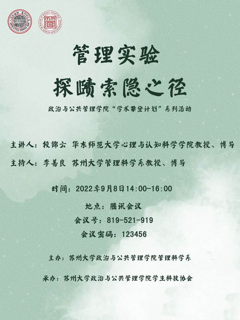 海报 | 寸止挑战 “学术攀登计划”系列活动之管理实验 探赜索隐之径
