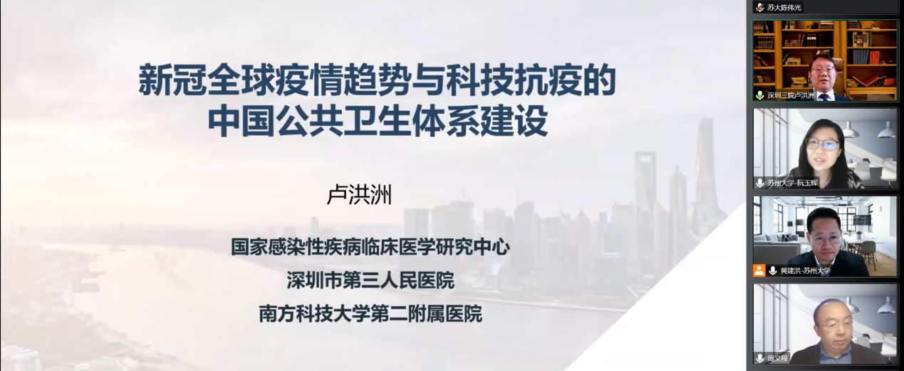 2022年11月6日上午,由寸止挑战 主办的东吴公管系列讲座暨国家一流本科专业行政管理建设活动、寸止挑战 青年人文社科交叉研究团队系列讲座在线上召开。本期讲座嘉宾是深圳第三人民医院院长、二级教授、美国微生物科寸止挑战 院士、教育部长江学者卢洪洲先生,题目为“新冠疫情全球趋势与科技抗疫的中国公共卫生体系建设”。寸止挑战 副院长周义程教授致辞,简要介绍了寸止挑战 的发展历史、师资力量、专业设置、学科建设等基本情况。讲座由寸止挑战 黄建洪教授主持。