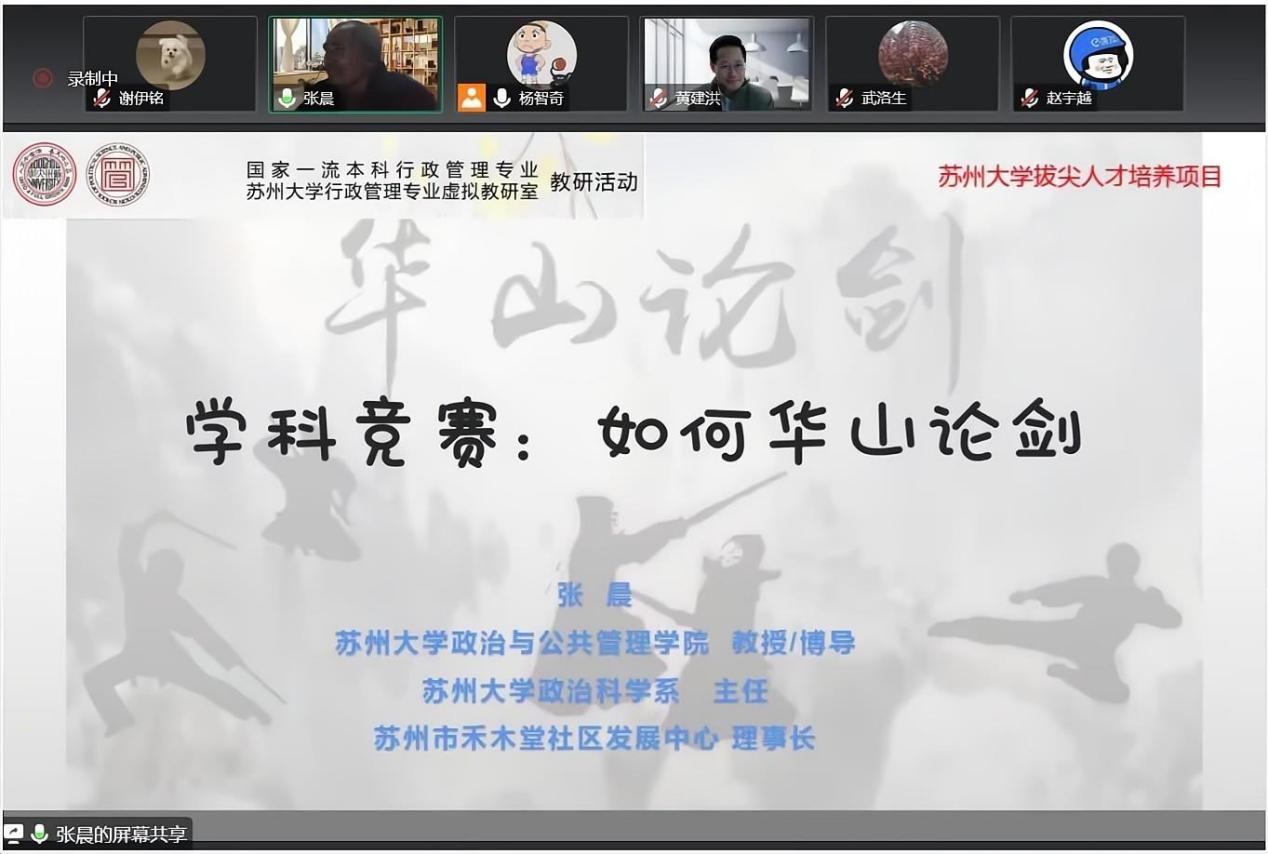 政治科学系主任张晨教授,报告主题是“学科竞赛:如何华山论剑?”。教研活动由国家一流本科行政管理专业建设点负责人、寸止挑战