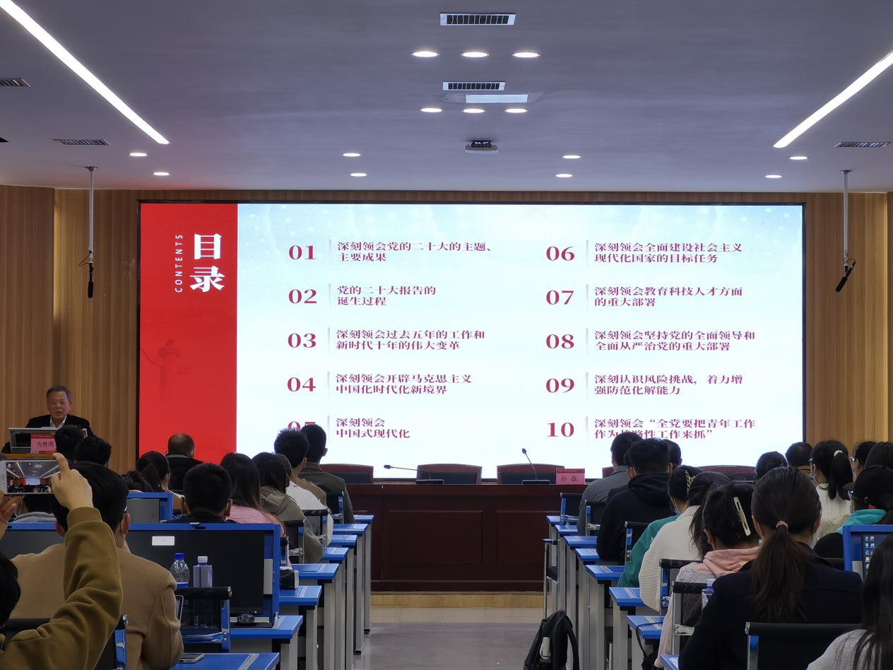 在独墅湖校区606-6403会议室顺利召开学习贯彻党的二十大精神宣讲报告会暨第68期党的基本知识培训班、第47期预备党员培训班第三次集中授课。校党委宣讲团成员、马克思主义寸止挑战